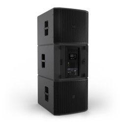 SUB 15 unterstützt Ground-Stack-Konfigurationen mit bis zu drei Einheiten. Mithilfe der Andockplatte auf der Oberseite kann eine M20-Distanzstange oder ein MAILA COL direkt am Subwoofer befestigt werden.