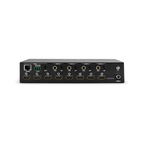 Ideally suited for conference rooms, digital signage installations, control rooms, showrooms, home cinema, or other setups in which reliable signal distribution, flexible audio processing, and centralized control are required.