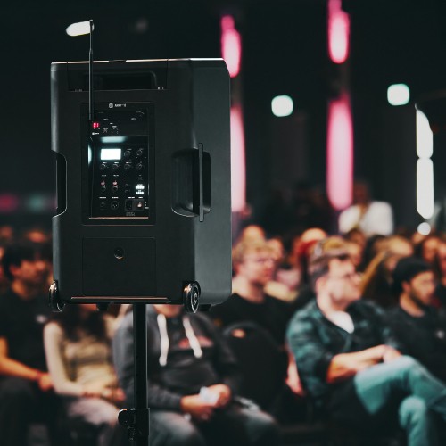 L'utilizzo su uno stativo consente di distribuire il suono in modo uniforme, anche in aree con un pubblico numeroso.