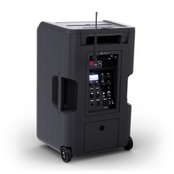 Grazie alle ruote integrate e alla maniglia telescopica allungabile, l’altoparlante può essere trasportato comodamente come un trolley.