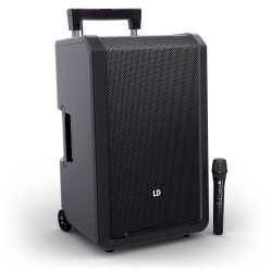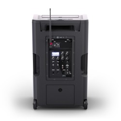 Grazie alle ruote integrate e alla maniglia telescopica allungabile, l’altoparlante può essere trasportato comodamente come un trolley.